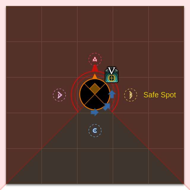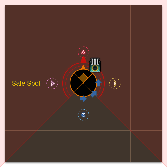 Opens with a cast of castAngular Addition, giving bossLala a Times Three or Times Five debuff. Next will be castArcane Blight. During the cast, bossLala will telegraph a 90° safe area, as well as a rotation. The safe area will rotate 90° in the shown direction either 3 or 5 times, depending on bossLala’s buff.