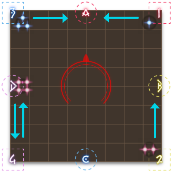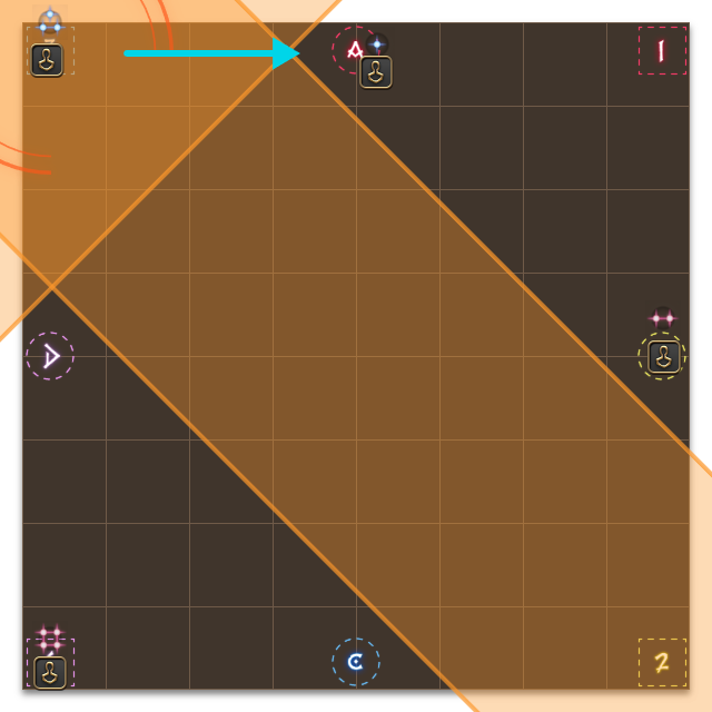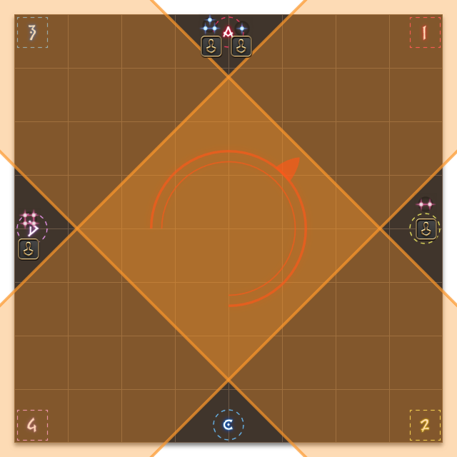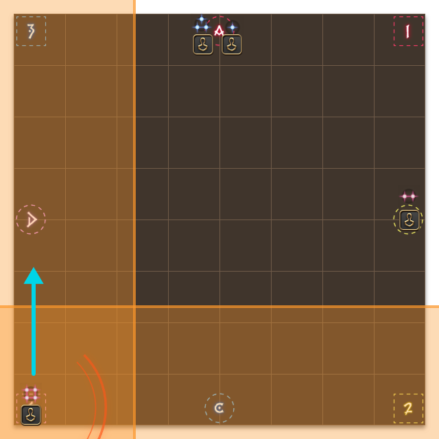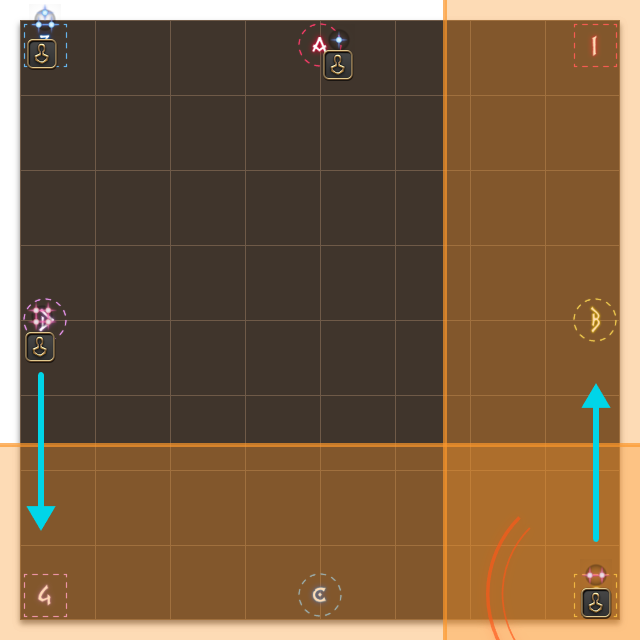 Each player will stand on the number marker which matches the icon above their head. The 1, 2, and 3 players can move to their markers as soon as the knockback resolves, however the 4 player must wait on the mdD marker for 2 jumps before moving onto m44.