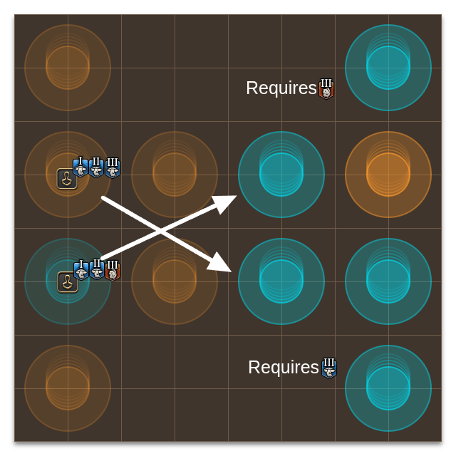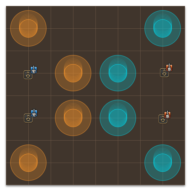 Because each player’s dropped tower never matches their III debuff, no player can end on the tower they drop themselves. So to solve this, we will be assingning players to drop their towers on one side of the arena, then crossing to the other side to soak towers.
