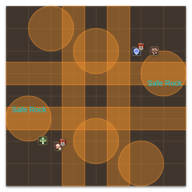 - Circle AOEs under each rock.