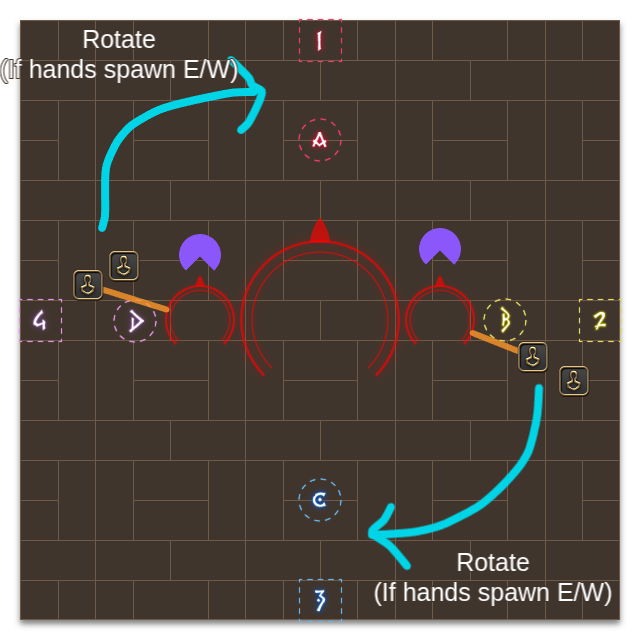 During all this, the hands will begin swiping, frequently hitting their wall with a large circle AOE.