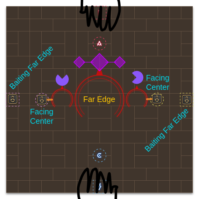 Finally, bossMoko will cast castNear Edge, hitting the closest two players with a circular AOE that applies bind, or castFar Edge which targets the furthest two players with the same effect. Both of these casts have a unique icon shown above moko’s head, identical to those found during M4S’s Witch Hunt.