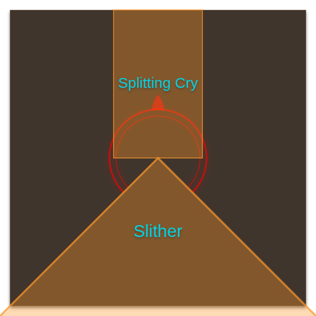 Splitting Cry (Tankbuster) and Slither AOEs. Slither casts after Splitting Cry.