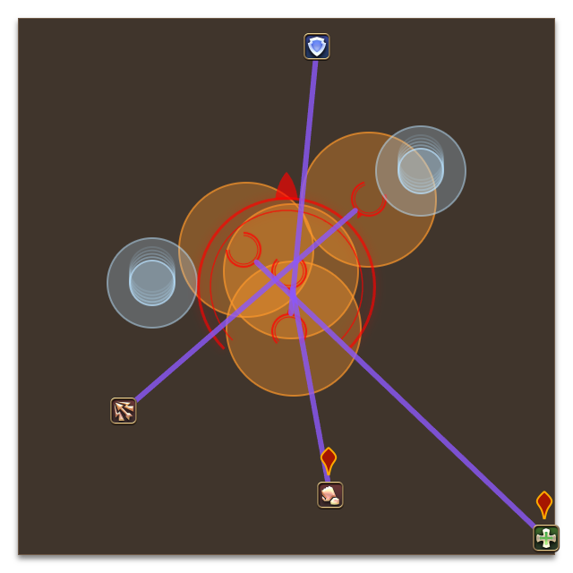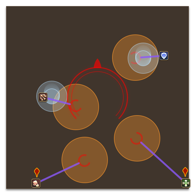 bossShishio will then begin casting castVengeful Souls. This will spawn two towers and apply markers to two players. The marked players will explode with a massive AOE at the end of this cast. At the same time, both of the towers will resolve.