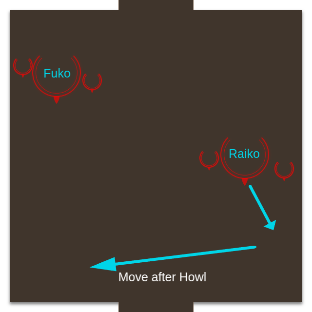 Begin by pulling this add pack to the south east corner. The Yuki will patrol south from its starting spot and turn towards the south west corner. After the castHowl cast, pull everything across to the south west. The Yuki will have passed by this point.